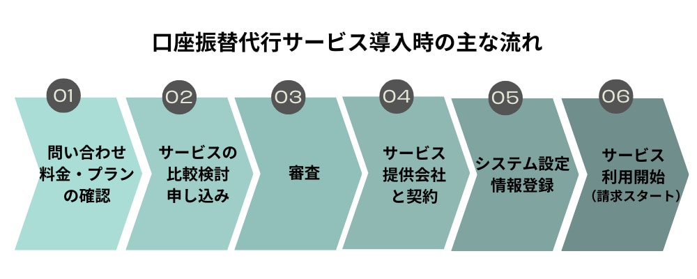 サービスによって細かな手順は異なるものの、口座振替代行サービス導入時の主な流れは次の5ステップです。