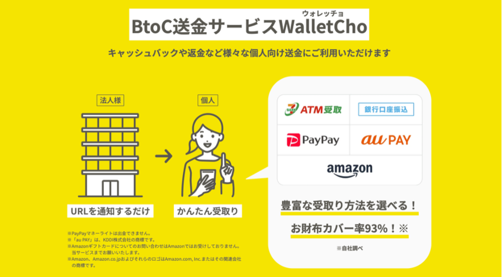 ウォレッチョは、株式会社スコープが提供する企業から個人への送金(BtoC送金)に強い送金プラットフォームです。