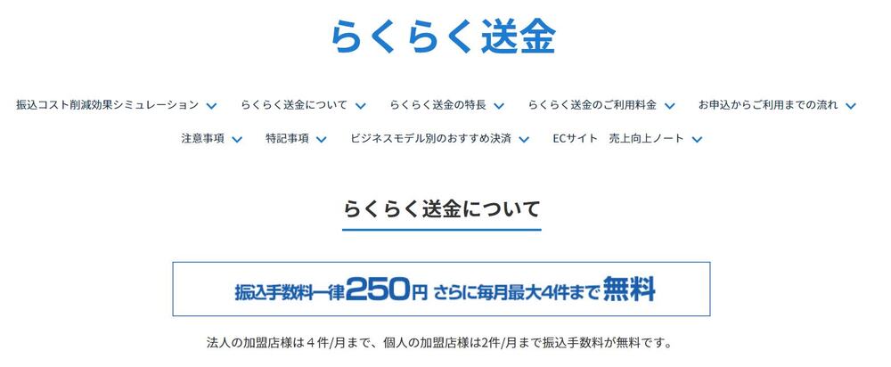 振込手数料が一律250円&毎月最大4件まで無料で使えるのが魅力で、振込件数が多ければ多いほどコストカットの威力を享受できます。