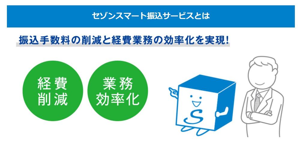 セゾンスマート振込サービスは、ネット上で完結する法人向けの支払い代行サービスです。