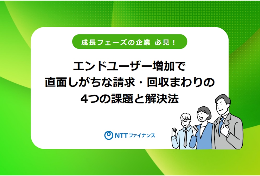なお売掛金の未回収を防ぐには、売掛金の回収を代行してくれるサービスの導入がおすすめです。例えば、NTTファイナンスの「回収代行サービス」は、導入企業と利用者の間に入り、自社商品やサービスの対価となる料金を代わりに回収してくれるサービスです。