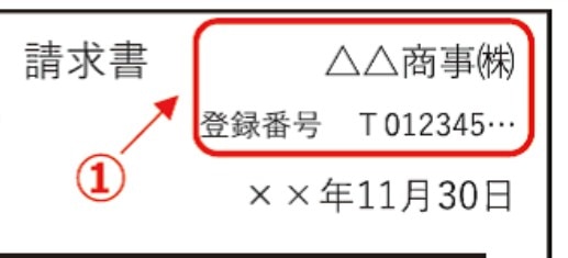 インボイス制度では、適格請求書発行事業者の登録番号の記載が必須となりました。従来の請求書では事業者名のみの記載で十分でしたが、現在は登録番号(下図の①参照)がなければ買い手側が仕入税額控除を受けられません。