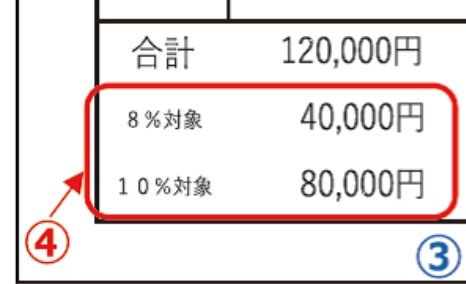 具体的には、10%対象商品の消費税額と8%対象商品の消費税額を分けて表示し、さらに適用税率も明記しなければなりません。
