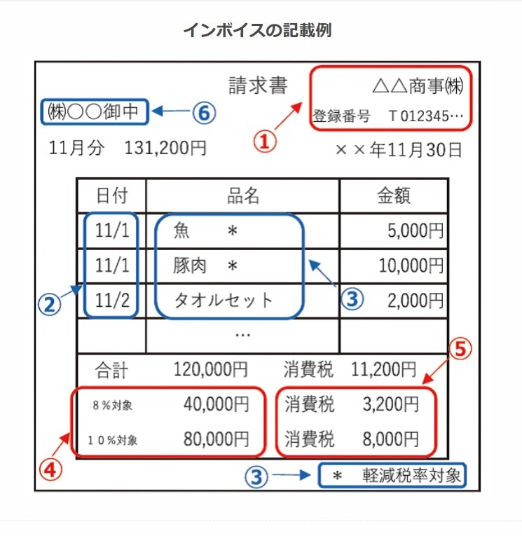 軽減税率8%が適用される品目については、その旨を明確に示すことが義務付けられました。従来の請求書では税率の区別が不要でしたが、複数税率制度の導入により8%の対象品目の識別が必要です。