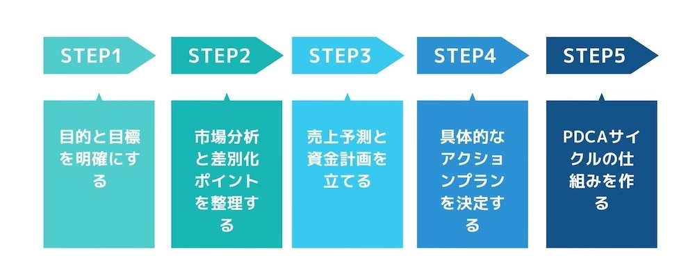 ここでは事業計画の立て方の5つのステップについて、解説します。