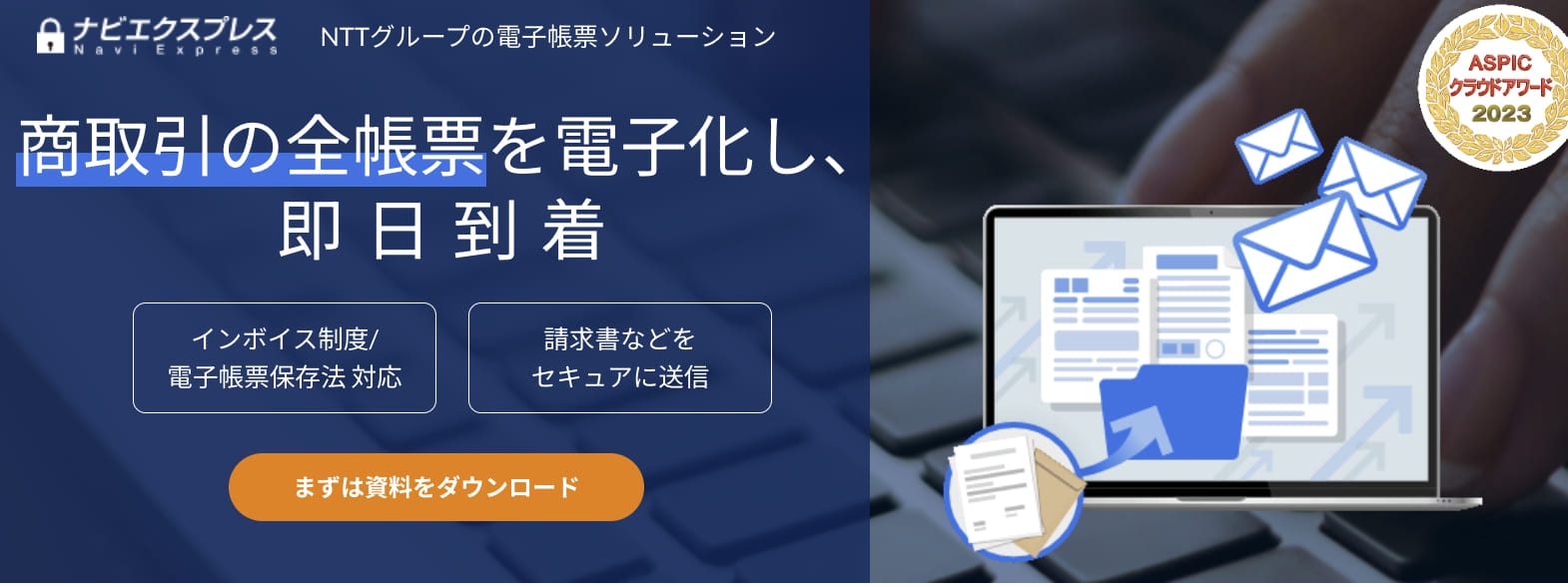 ナビエクスプレスは、商取引の全帳簿を電子化するサービスです。従来、紙で個別発送していた請求書や各種明細書をクラウド上でPDFに変換し、メールなどで一斉に送信できます。