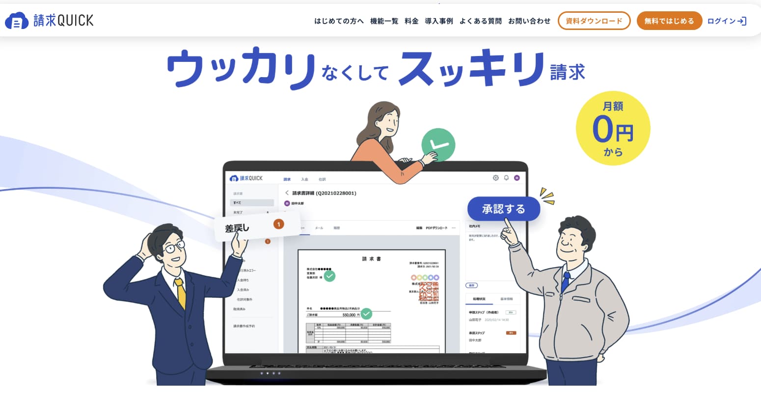 請求QUICKは、請求書の発行や入金消込・仕訳の計上などができるクラウド型請求書発行システムです。請求書の発行通数が少ないうちは、初期費用がかからずに細かい設定なしで請求書を迅速に作成できるため、スポット発注のような取引にも柔軟に対応できます。