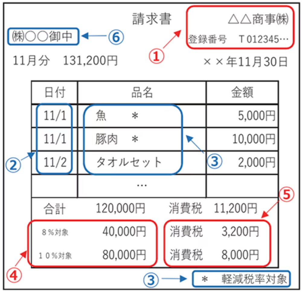 1.インボイス制度で必要な6つの記載項目