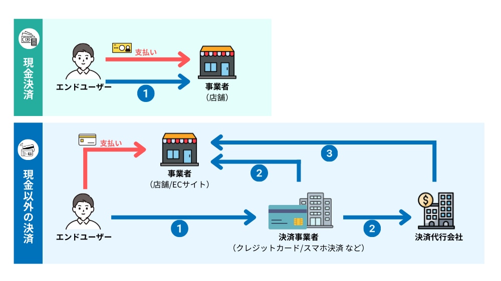 その後、決済代行会社が各決済機関から売上金を回収し、手数料を差し引いた金額を事業者に一括して入金します。