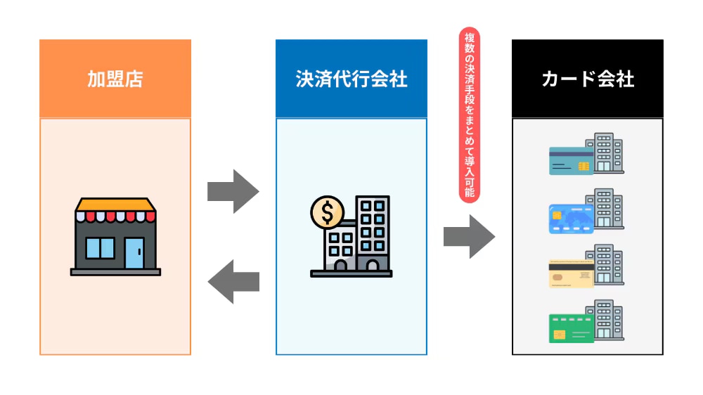「決済代行」とは、加盟店に代わってクレジットカード会社などとの契約や決済処理を一括で代行し、決済に関する業務を効率化するサービスです。
