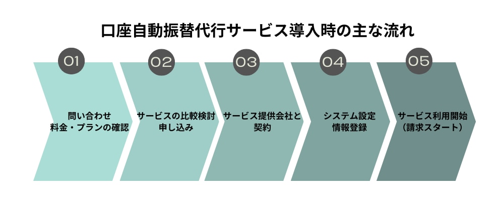 事業に口座自動振替を導入するには、どのような方法があるのでしょうか。代表的な方法である「口座自動振替代行サービス」の導入の流れも解説します。